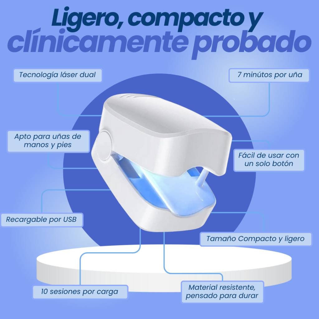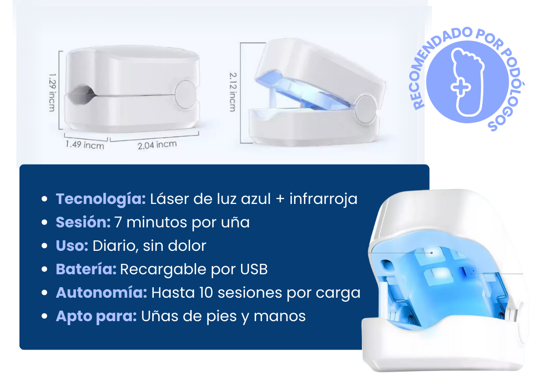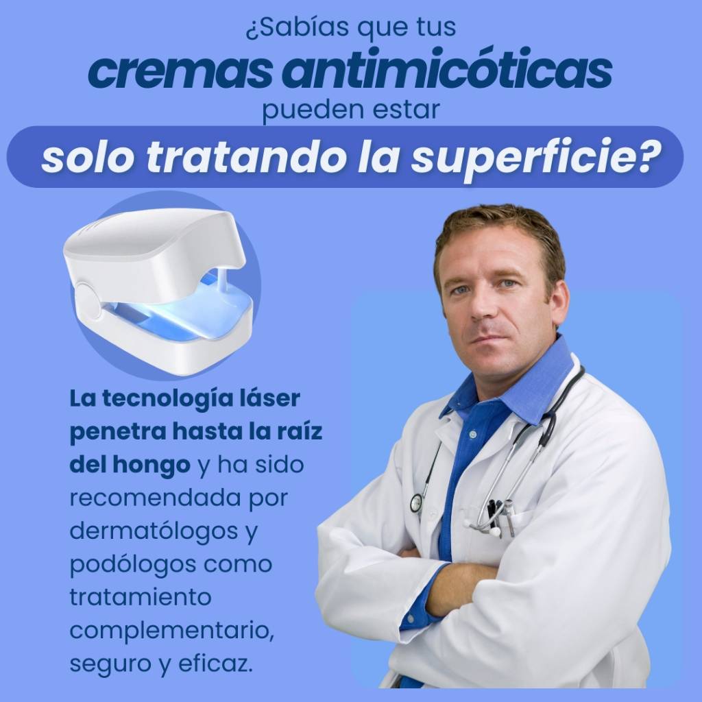Sí. El láser penetra en la uña y actúa en la raíz del hongo, algo que cremas y esmaltes no logran. Al usarlo 7 minutos al día, verás mejoras visibles en pocas semanas.
